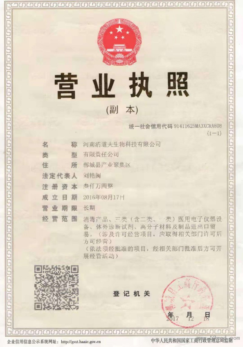 生產銷售:消毒產品、一類醫(yī)療器械、二類醫(yī)療器械、三類醫(yī)療器械、醫(yī)用電子儀器...