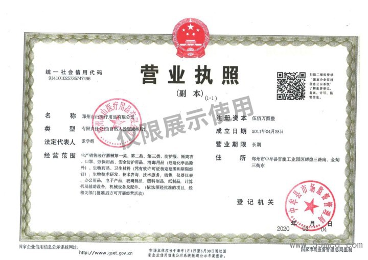 發(fā)證機(jī)構(gòu): | ??中牟縣市場監(jiān)督管理局 | 發(fā)證時間 : | ??2020-03-04 |